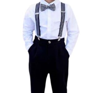 Boys Cotton Blend Solid Full Sleeves Shirt and Pant Set with Suspender and Bow Tie | Clothing Set for Boys