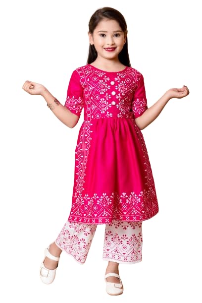 DRESSES Cotton Blend Casual Printed Short Sleeves Long Kurta and Pallazzo Set for Girls Kids
