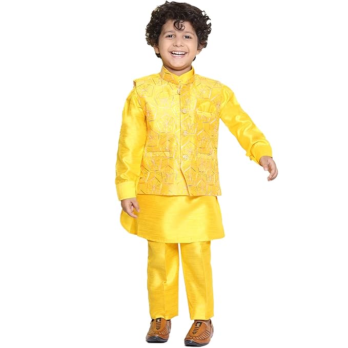 • Sales Package : – 1 Kurta, 1 Trouser, 1 Waistcoat ||Style:- Kurta Pyjama Set For Boys